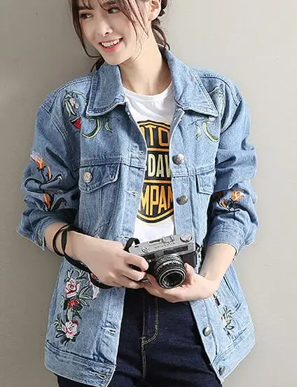 Back To Schule Verkauf Jeansjacke Bestickt Blume Breite Cut Jeansjacke Fur Damen Hellblau Kostenloser Versand Jackets For Ladies Denim Jacketjackets For Sale Aliexpress